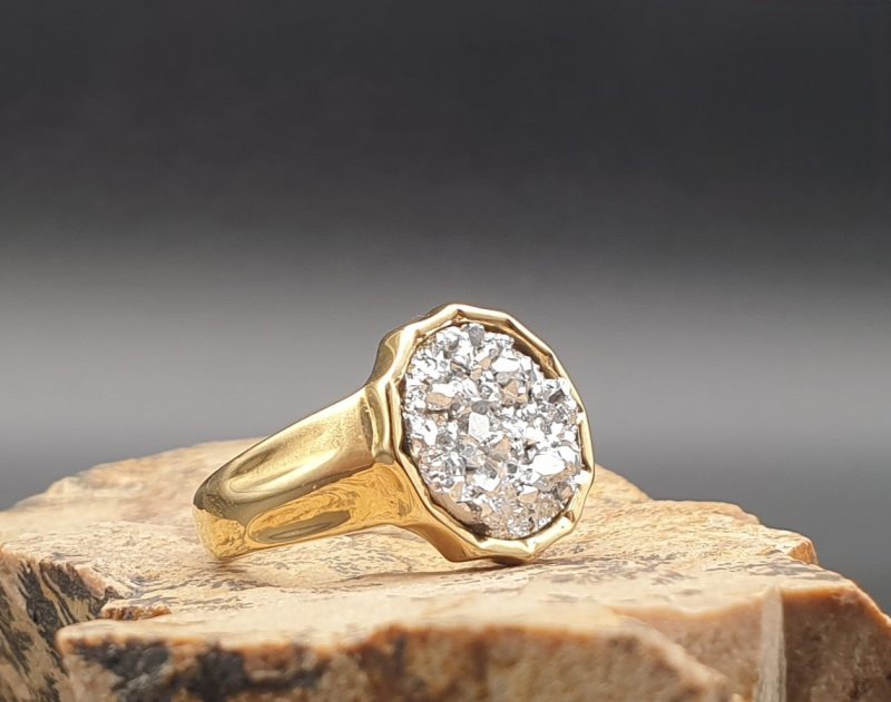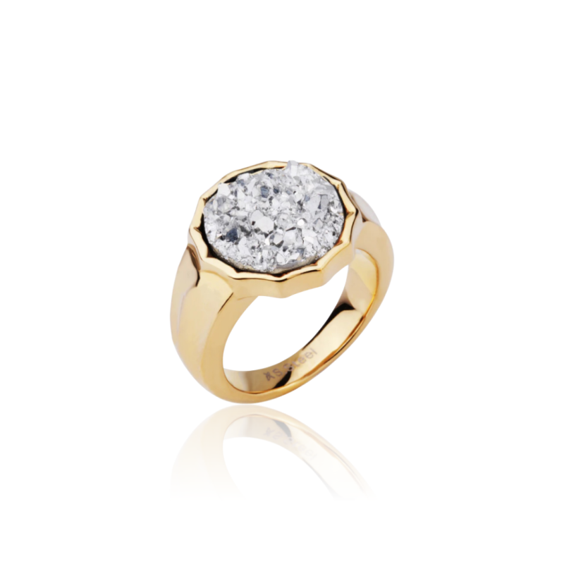 Gold 14K S. Steel W/ Quartz Druzy Stone