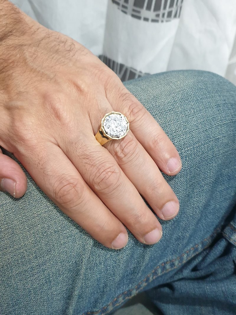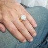 خاتم مطلي ذهبي بحجر الكوارتز الطبيعي